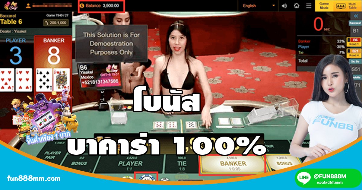 สำหรับนักเดิมพันมือใหม่ที่ยังไม่เข้าใจระบบการเล่นเกมบาคาร่าแบบออนไลน์ อาจทำให้รู้สึกว่ามันยากและซับซ้อน ซึ่งสมาชิกสามารถเข้ามาศึกษาข้อมูลและเทคนิคการเล่น โดยนำมาวิเคราะห์และหัดเล่นบ่อยๆ รวมทั้งศึกษาสูตรการเอาชนะเกมไพ่เกมบาคาร่า ก็จะทำให้เข้าใจและมีกำลังใจที่จะเข้าไปมาลุ้นเงินรางวัลกับเว็บเรามากขึ้น ซึ่งหากสามารถวิเคราะห์และเดาทางเกมบาคาร่า ได้ถูกต้องแม่นยำ โอกาสในการทำเงินจากการเล่นเกมนี้ก็จะมีสูงขึ้น และอาจกลายเป็นเกมโปรดของนักเดิมพันที่คุณพร้อมสู้ทุกสถานการณ์ เชื่อเหลือเกินว่าคุณจะได้ทั้งความสนุก ตื่นเต้น เพลิดเพลินไปกับเกมไพ่บาคาร่าออนไลน์รวมทั้งเกมอื่นๆ ในเว็บของเรา fun888 ที่เปิดให้เข้ามาลุ้นเพื่อเสี่ยงโชคตลอด 24 ชั่วโมง มาสร้างรายได้แบบไม่มีขีดจำกัดกันดีกว่า!